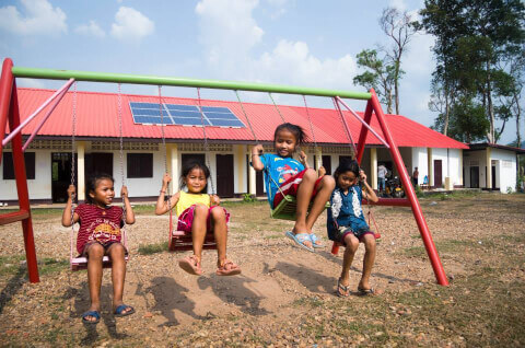 Sourires d’Enfants prend en charge la totalité des frais de construction ou de remise en état des écoles en partenariat avec les autorités locales qui demeurent les gestionnaires de ces écoles publiques : les bâtiments scolaires appartiennent au village et les enseignants sont des fonctionnaires nommés et rémunérés par le Ministère Laotien de l’Éducation Nationale.